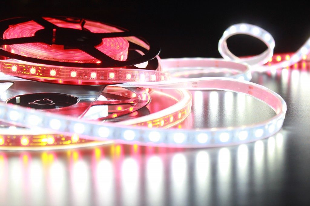 LED Strip Lights are long lines of tape with small LEDs integrated into the base. With commercial grade 3M adhesive on the back, you can stick this flexible circuit board onto many surfaces.