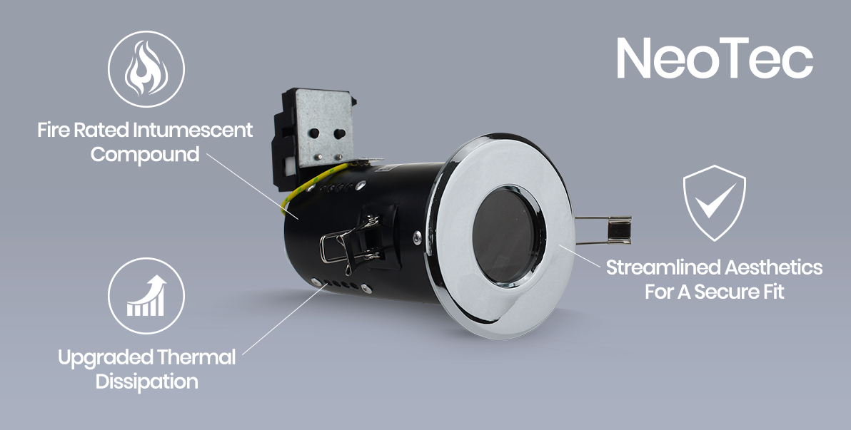 The NeoTec line has been fully updated to deliver the absolute best that a downlight can be. With such a sturdy design, these fire rated materials have been streamlined to provide better fire protection, with a stylish appearance that looks great. The design has been revamped to include better heat dissipation, increasing the lifespan of your bulb.