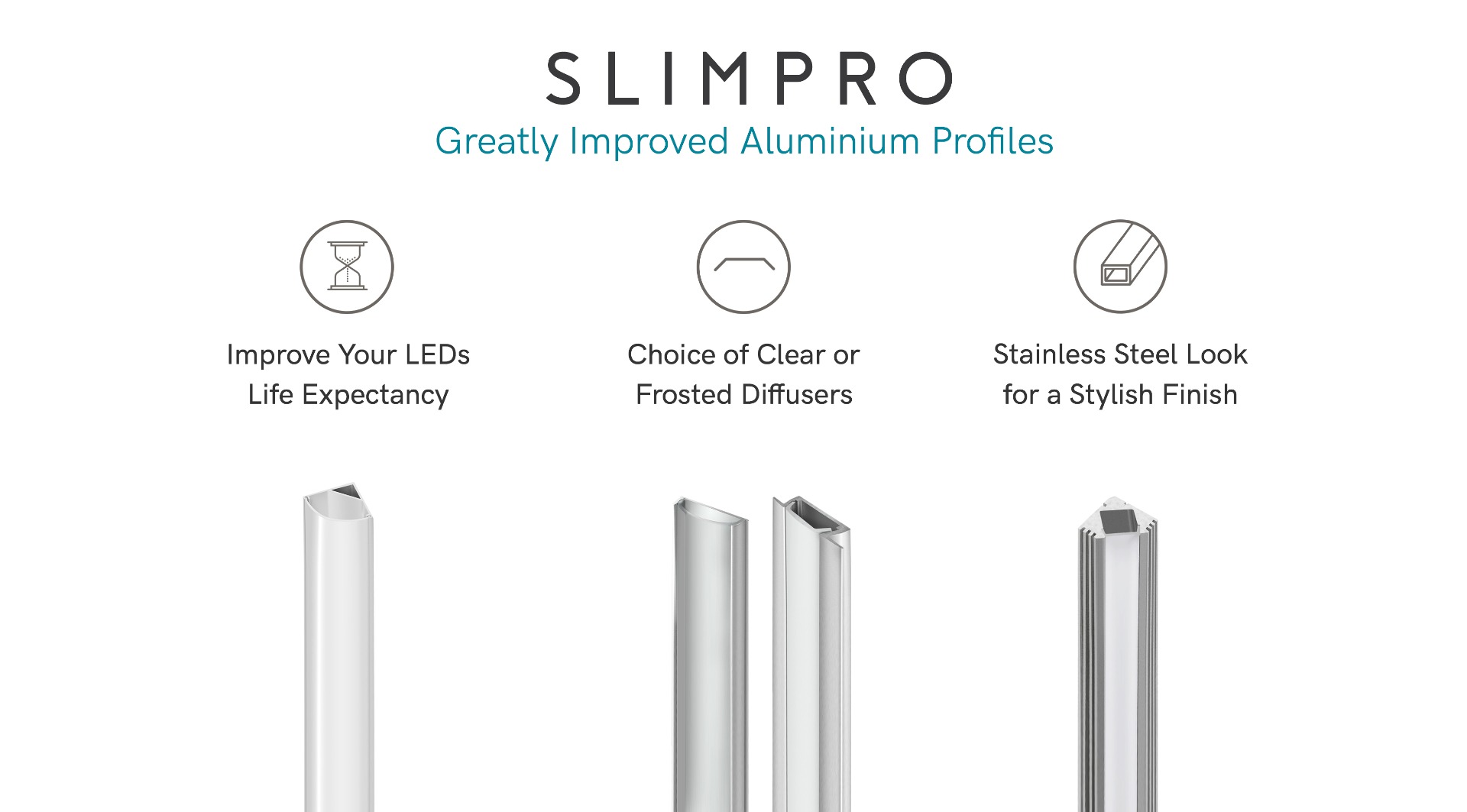 With a greatly improved design, the new SlimPro line of aluminium profiles will be able to dissipate heat at a rate not seen before. This can double your LED strip’s life expectancy by massively decreasing the heat pressures on it. This new SlimPro design also looks much more professional, with a stylish stainless steel look, and the choice between two different diffuser colours.